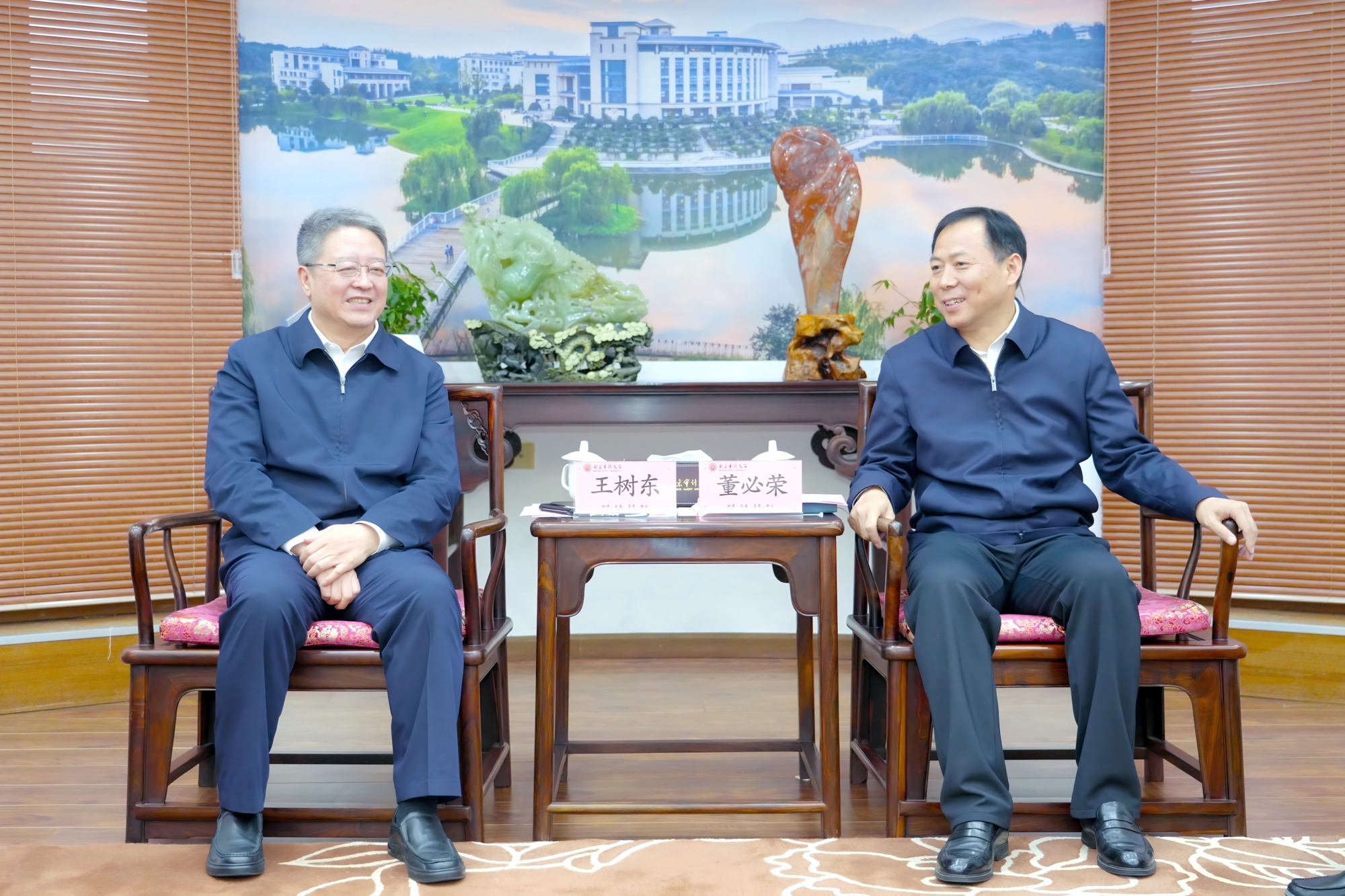 董必榮對王樹東一行表示歡迎,對中國中煤長期支持學校審計人才培養(yǎng)表示感謝,介紹了南京審計大學基本情況以及在人才培養(yǎng)、學科建設(shè)、國際交流等方面的特色成果。他表示,中國中煤是保障國家能源安全、維護國有資產(chǎn)安全、推動經(jīng)濟綠色轉(zhuǎn)型的關(guān)鍵力量。本次合作既是高校智力資源與審計實務(wù)需求的精準對接,也是理論與實踐的深度融合。期待雙方進一步發(fā)揮資源優(yōu)勢,創(chuàng)新合作機制,推進國有企業(yè)內(nèi)部治理體系現(xiàn)代化建設(shè),實現(xiàn)互利共贏發(fā)展。